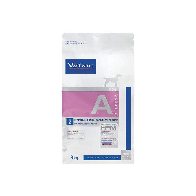 • VETERINARY HPM DOG A2 HYPOALLERGY FISH permet une prise en charge nutritionnelle globale des chiens présentant des intolérances alimentaires se manifestant par des troubles digestifs ou par des troubles cutanés.