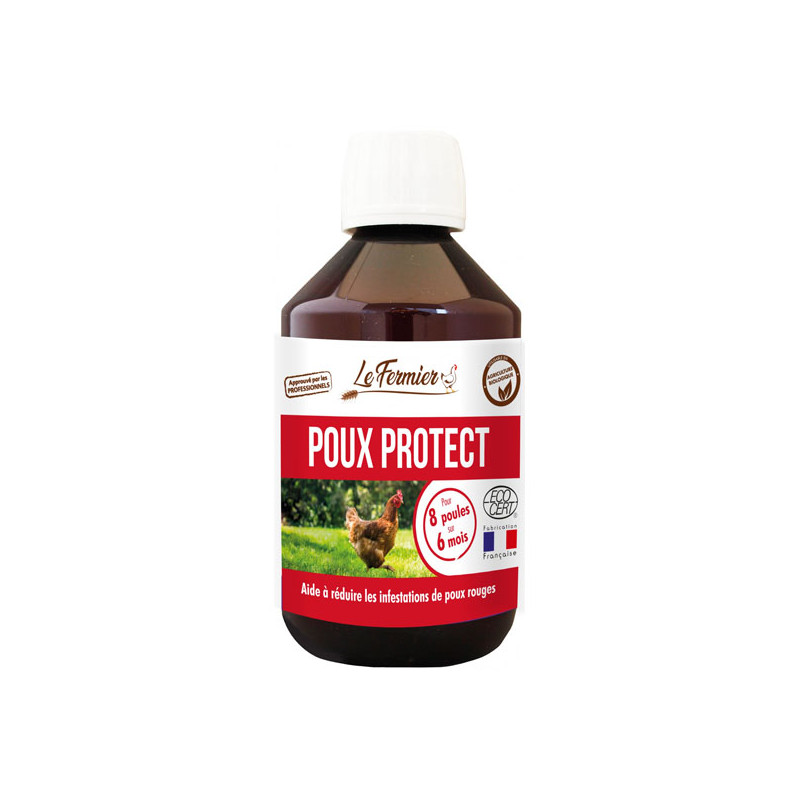 Poux protect est un anti-poux naturel visant à rendre le sang des poules impropre à la consommation par les poux rouges.