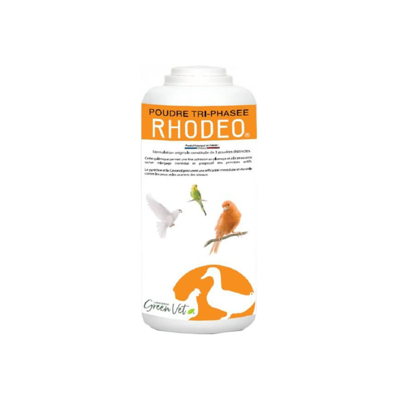 RHODEO POUDRE possède une galénique originale tri-phasée lui permettant une fine adhésion au plumage et à la peau, ainsi qu’un relargage immédiat et progressif des principes actifs.