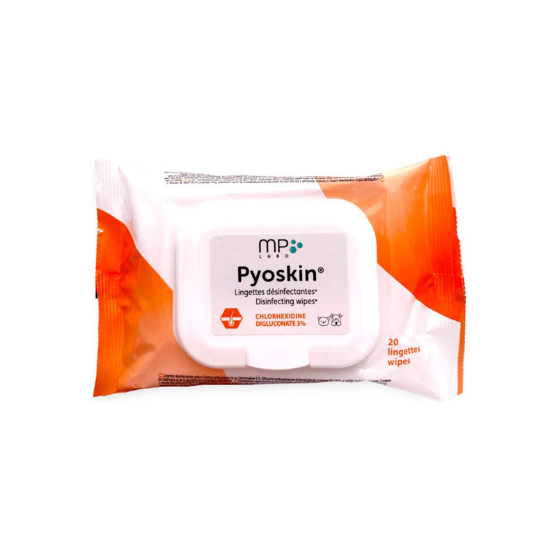 Les lingettes Pyoskin Wipes désinfectent la peau, les espaces interdigités, les plis cutanés.