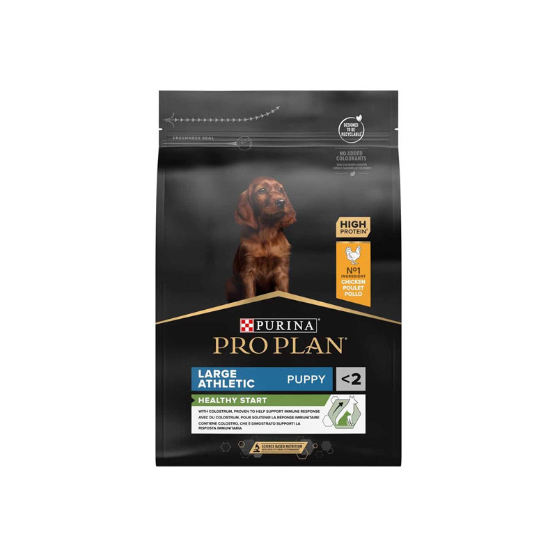 - Formulé pour les chiots de grande taille de morphotype athlétique pour favoriser la bonne santé des articulations et un mode de vie actif.