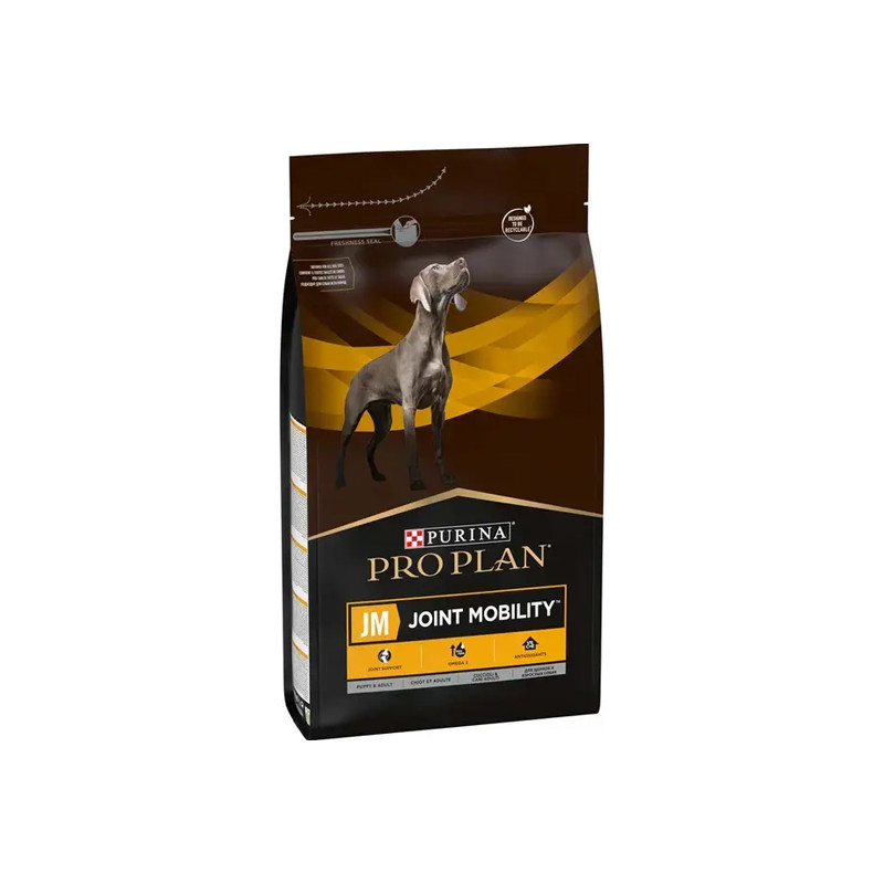 Canine Jm Joint Mobility est un aliment complet pour chien qui contribue à préserver la bonne santé et la souplesse des articulations des chiens de tous âges, même les chiots ; il convient aux races ayant des articulations fragiles.