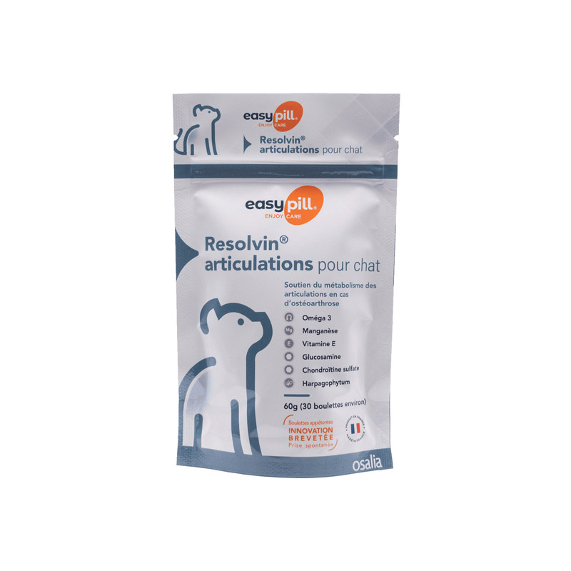 - Easypill Chat Resolvin articulations est enrichi en Oméga 3, en méthionine et en manganèse.