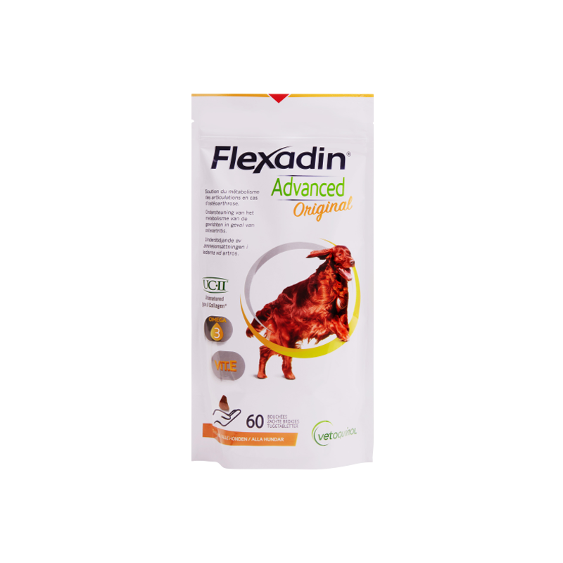 Flexadin Advanced se présente sous forme de bouchées appétentes pour une administration facile 1 fois par jour.