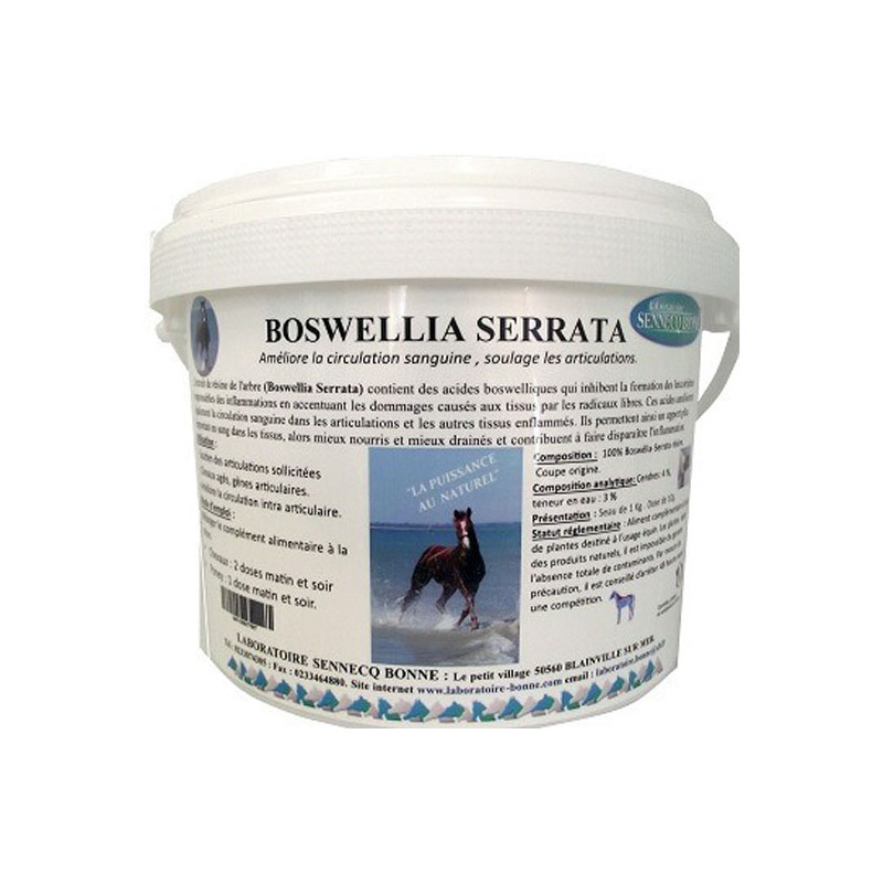 L'extrait de résine de l'arbre (Boswellia Serrata) contient des acides boswelliques qui inhibent la formation des leucotriènes responsables des inflammations en accentuant les dommages causés aux tissus par les radicaux libres.