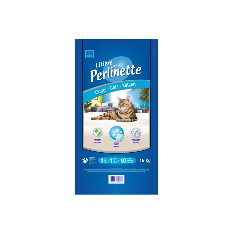 - Litière constituée de silice, sous forme de cristaux transparents.
