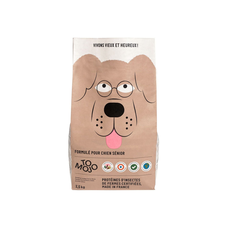 Cette recette pour chien sénior est enrichie en oméga 3 (graines de lin et de chia, huile de tournesol) et enrichie en fibres pour soutenir respectivement le système articulaire et digestif de votre boule de poils.