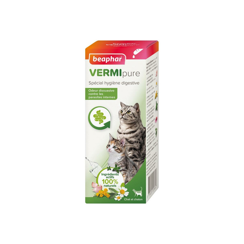 VERMIpure de Beaphar est une solution liquide à base d’extraits naturels de plantes traditionnellement connues et utilisées pour leurs propriétés digestives :