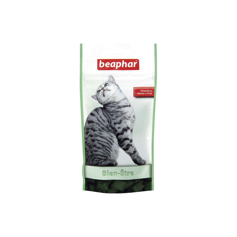 Bien-être de Beaphar sont de délicieuses friandises fourrées d’une pâte à l’herbe à chat.