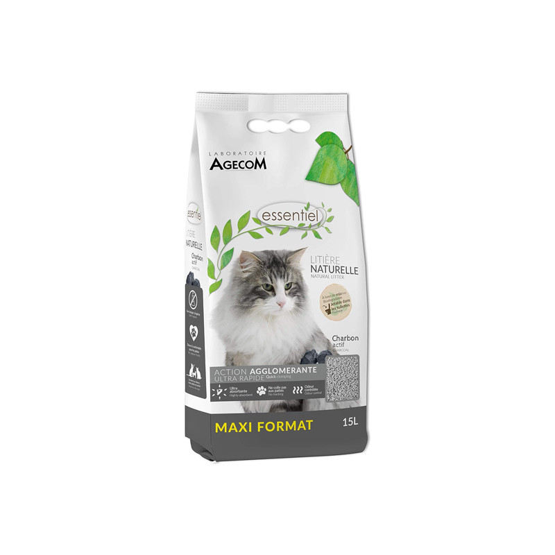 La partie utilisée par le chat absorbe l’urine, les odeurs, et s’agglomère rapidement.