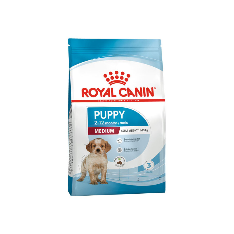 Les croquettes ROYAL CANIN Medium Puppy sont spécialement formulées pour répondre aux besoins nutritionnels des chiots de races moyennes. Cette formule convient aux chiots âgés de 2 à 12 mois qui devraient atteindre un poids adulte compris entre 11 et 25 kg.
