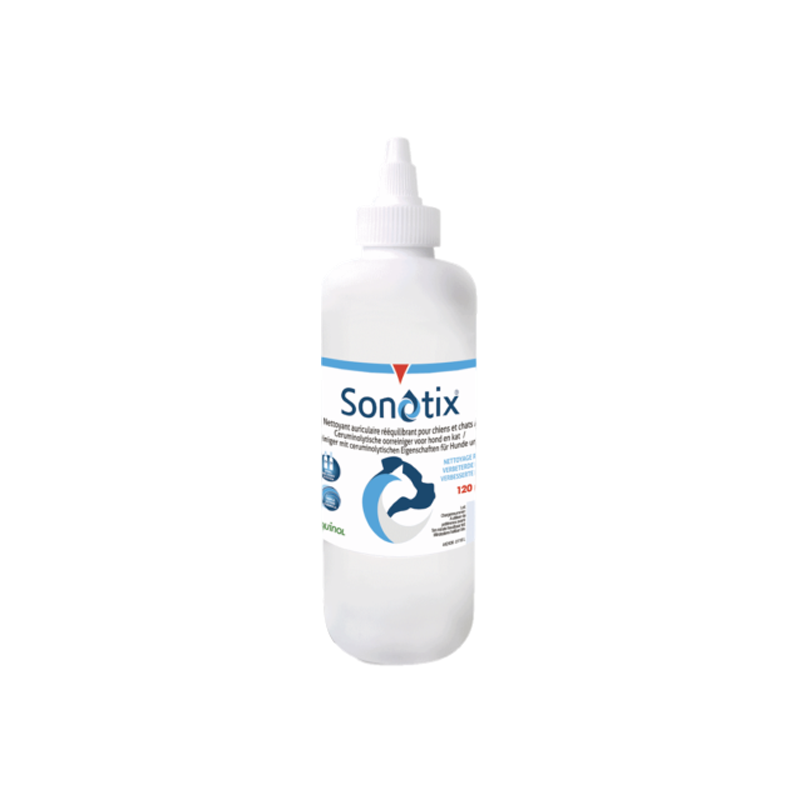 Sonotix est un nettoyant auriculaire rééquilibrant pour chiens et chats.