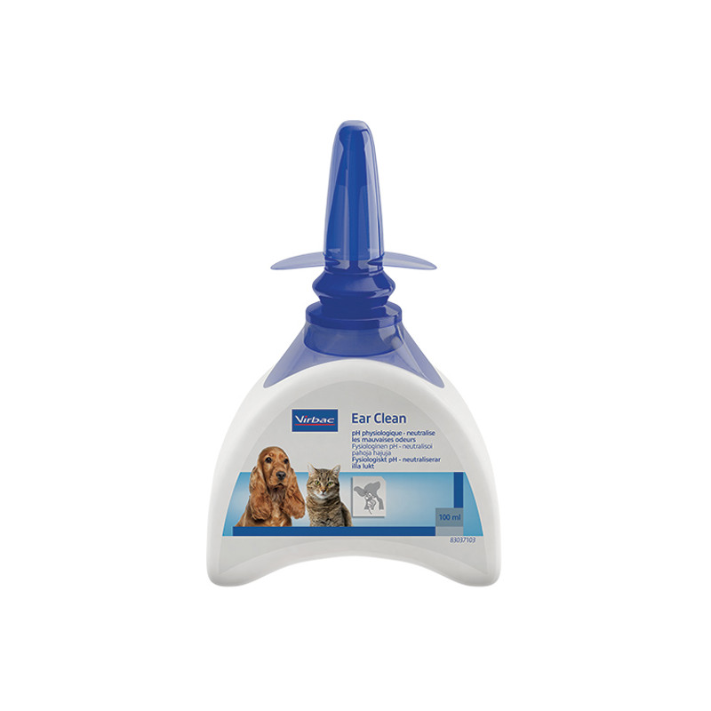 Le nettoyant auriculaire Virbac s'utilise pour l'hygiène régulière des oreilles chez le chien et le chat.