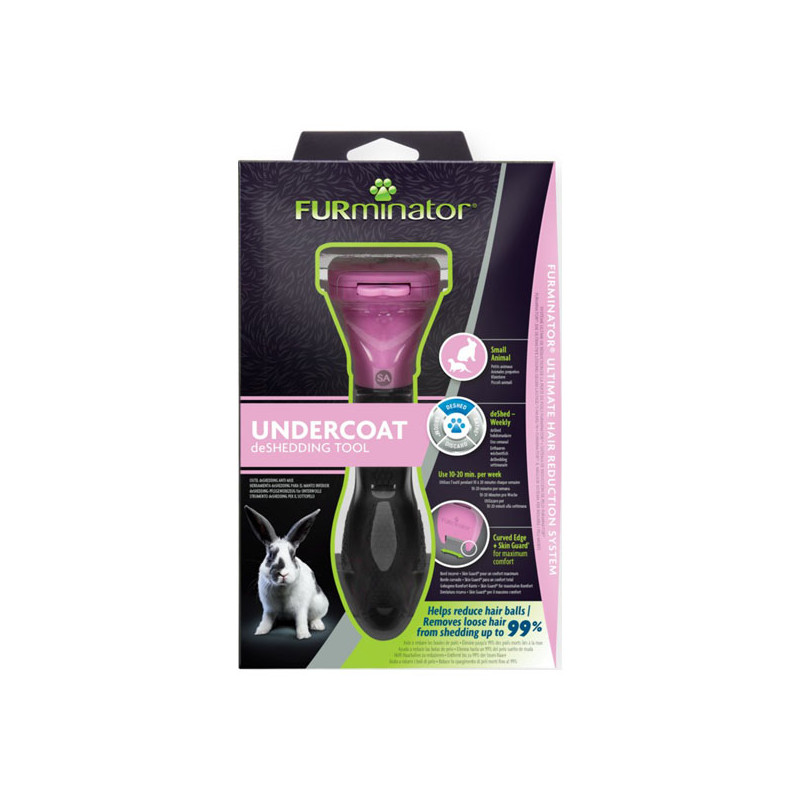 Le FURminator Undercoat deShedding Tool pour toutes races de petits animaux réduit la quantité de poils morts de jusqu’à 99 %.
