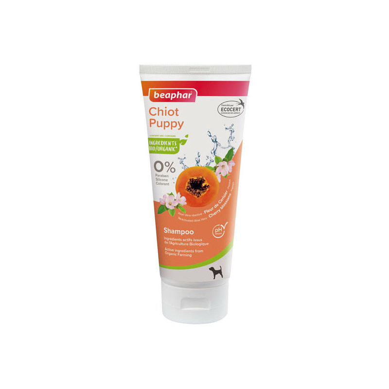 Le ph neutre de ce shampoing respecte le pelage délicat de votre chiot.