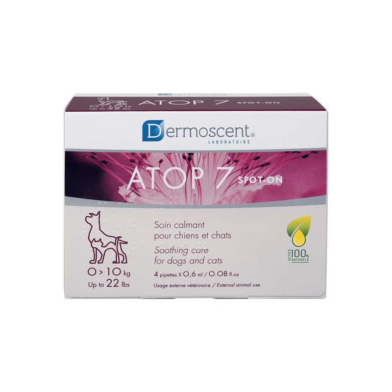 ATOP 7 spot-on est le 1er spot-on contenant exclusivement des ingrédients d'origine naturelle pour favoriser la réparation de la barrière cutanée et contribuer à apaiser les peaux irritées.