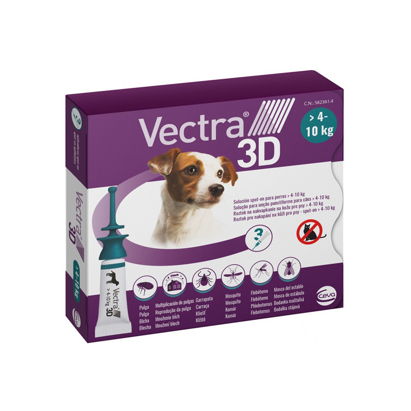 AnimoRef - Ceva Vectra 3D solution spot-on pour chiens de 4 à 10kg 3 pipettes