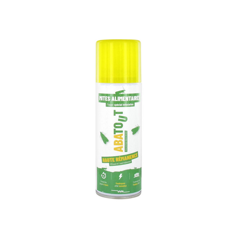 Abatout Laque Anti-Mites Alimentaires est un fogger spécial invasion massive pour le traitement curatif et préventif des “mites alimentaires”.