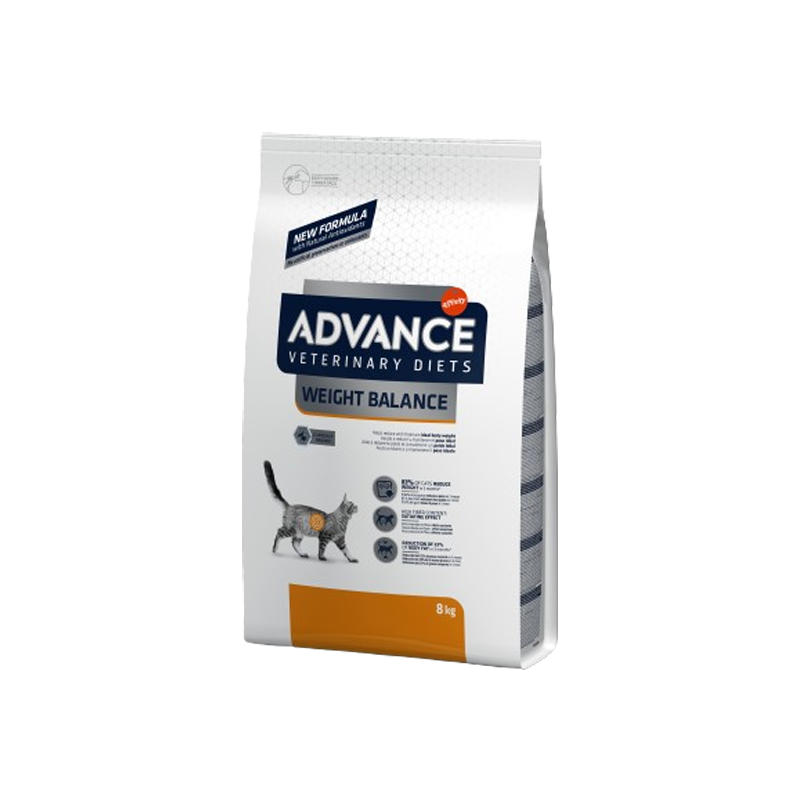 ADVANCE VETERINARY DIETS WEIGHT BALANCE FELINE est un aliment diététique complet pour chats adultes, élaboré pour réduire l’excès de poids et réguler le métabolisme lipidique en cas d’hyperlipidémie, grâce à un niveau énergétique faible, une faible teneur en graisse et une teneur élevée en acides gras essentiels.