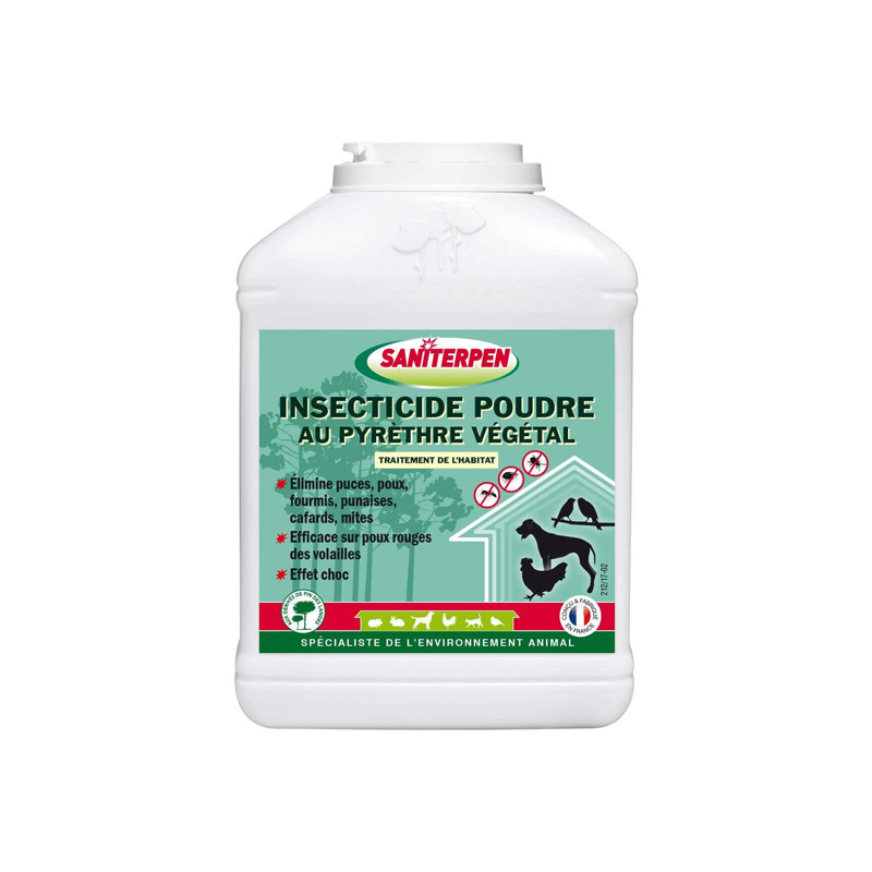 Saniterpen Insecticide Poudre au Pyrèthre Végétal est un insecticide au Pin des Landes qui élimine efficacement les insectes grâce à son effet choc.