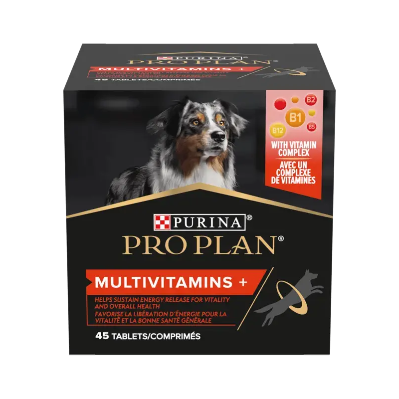 PRO PLAN Multivitamins+ est un aliment complémentaire pour chiens adultes.