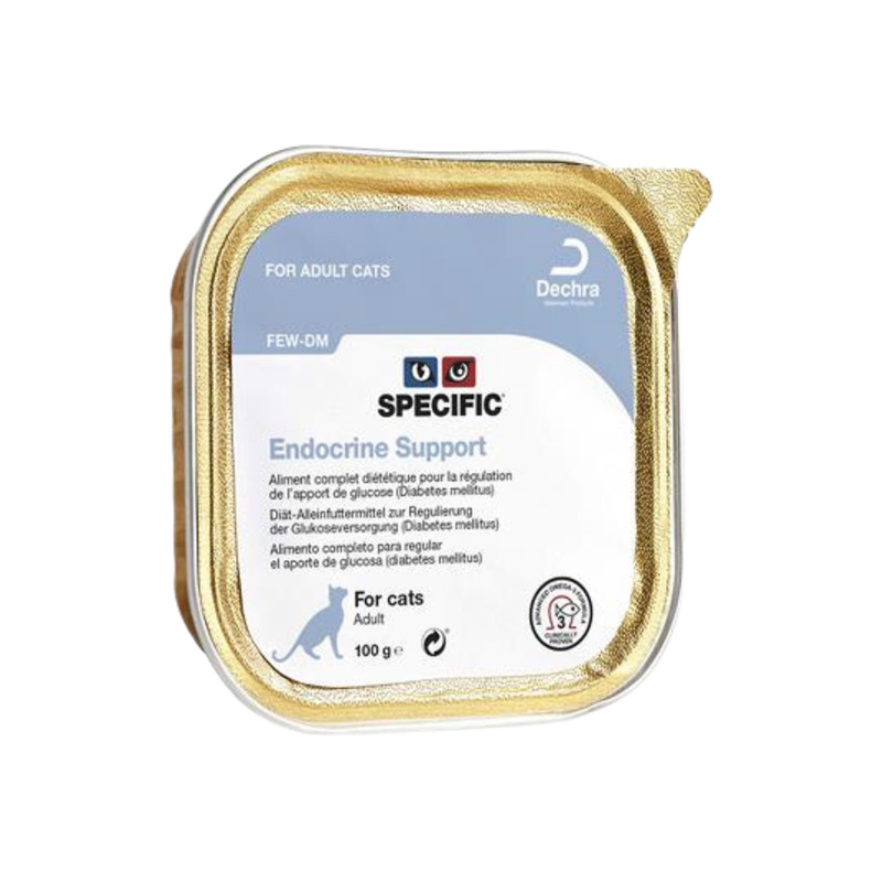 SPECIFIC endocrine Support est un aliment humide pour le support de chats diabétiques contenant un très faible niveau en glucides et une concentration élevée en omega-3 issu de sources marines.