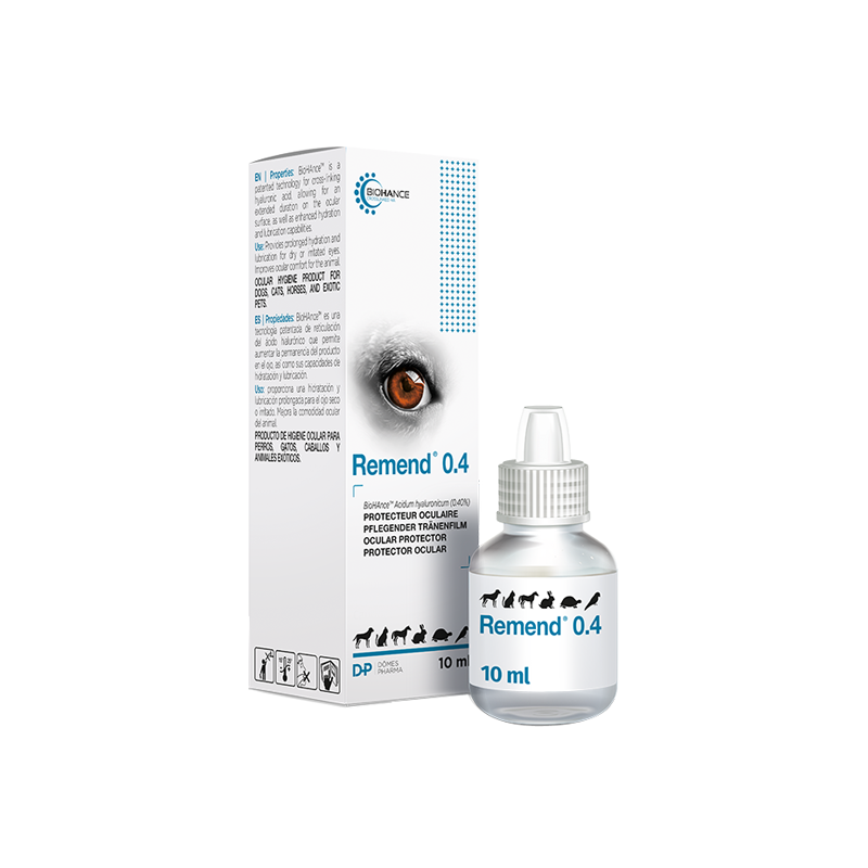- Placer 1 à 2 gouttes directement dans l'œil de l'animal. Le mouvement naturel du clignement va répartir le produit à la surface de l’œil. Lors de l'application, évitez de laisser l'embout du flacon entrer en contact avec les yeux de l'animal ou toute autre surface.